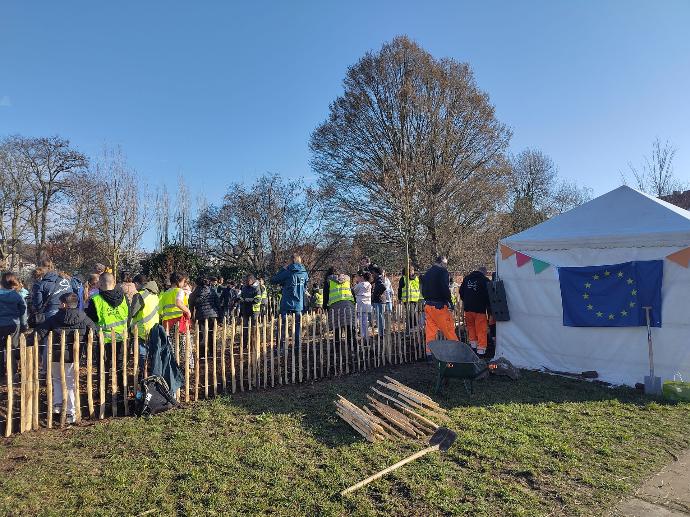 Pupils from Lyceum Mechelen and Busleyden Atheneum Caputsteen planted the forest alongside local neighbours, guided by GoodPlanet Belgium — the national ambassador for Tiny Forests. Beyond organising the preparation, planting day and long-term management, GoodPlanet also transformed the site into a learning environment, offering workshops, materials and tools, and creating a pathway for pupils to become official “Tiny Forest Rangers.”